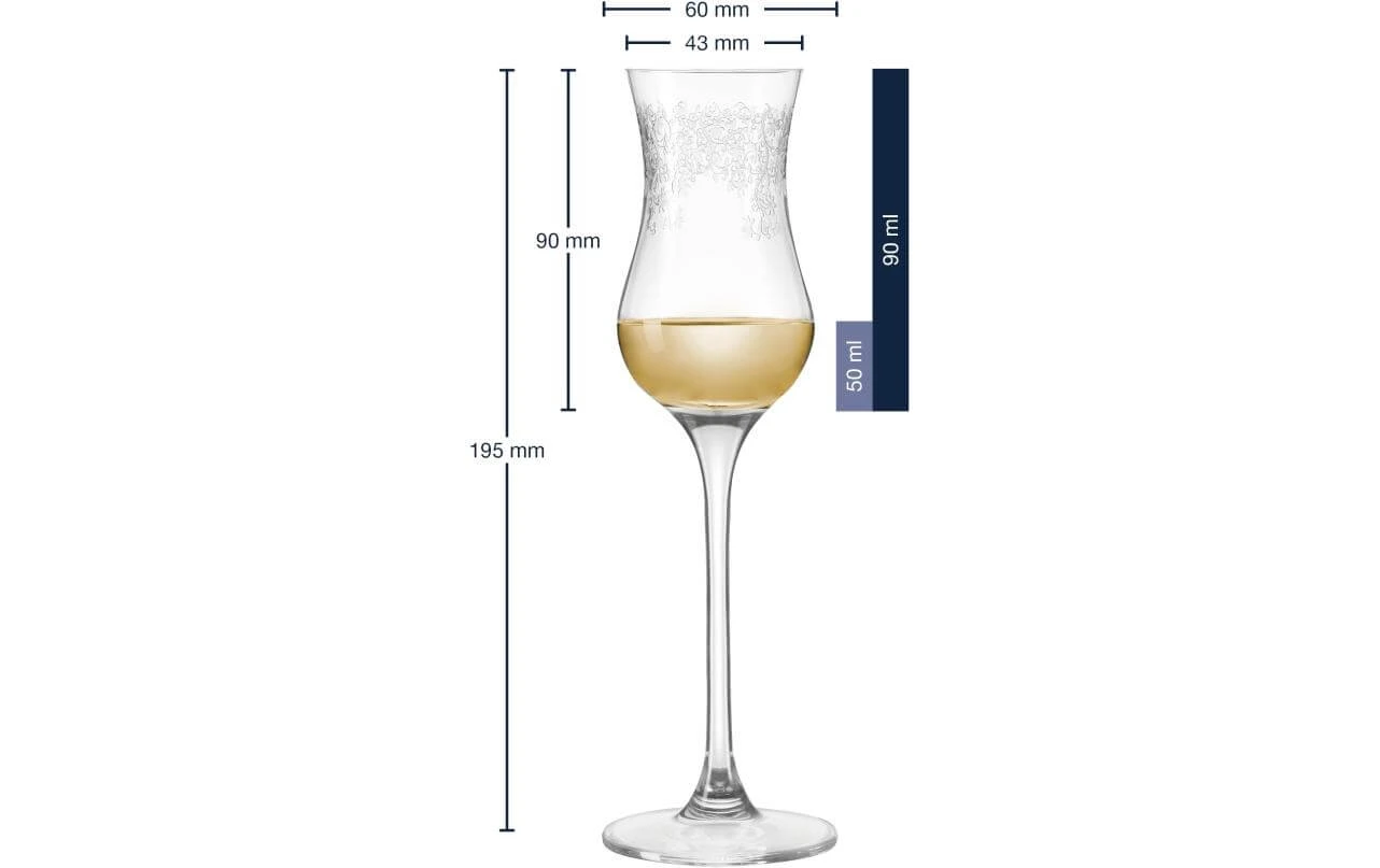 Material: Glas, Höhe: 19.5 cm, Volumen: 90 ml, Glas Typ: Grappaglas, Verpackungseinheit: 6 Stück, Detailfarbe: Transparent