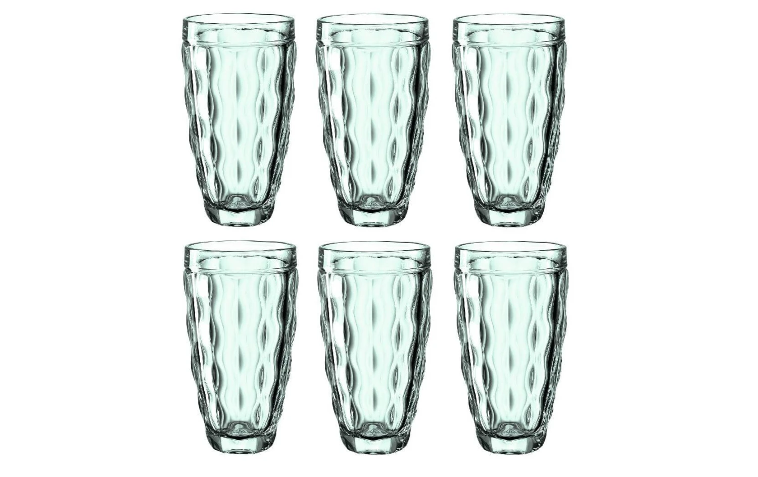 Material: Glas, Höhe: 14 cm, Volumen: 370 ml, Glas Typ: Longdrinkglas, Verpackungseinheit: 6 Stück, Detailfarbe: Grün