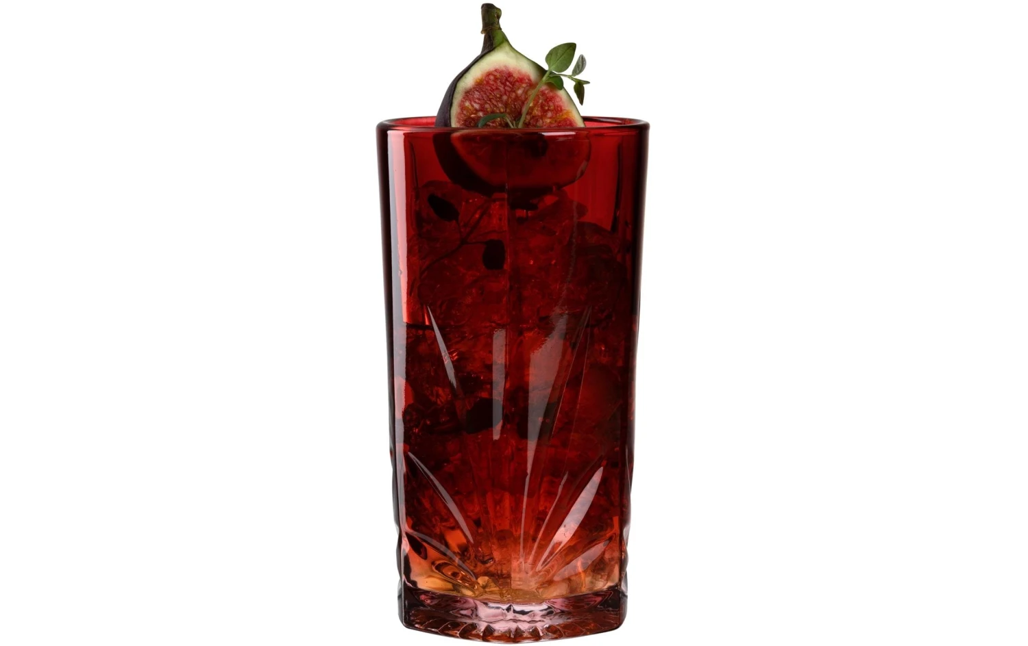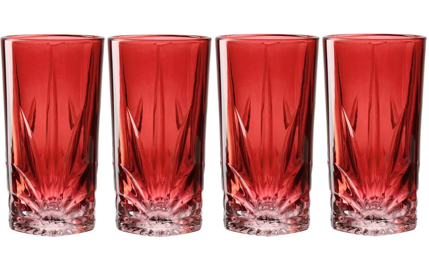 Material: Kalk-Natron-Glas, Höhe: 16 cm, Volumen: 530 ml, Glas Typ: Longdrinkglas, Verpackungseinheit: 4 Stück, Detailfarbe: Rot