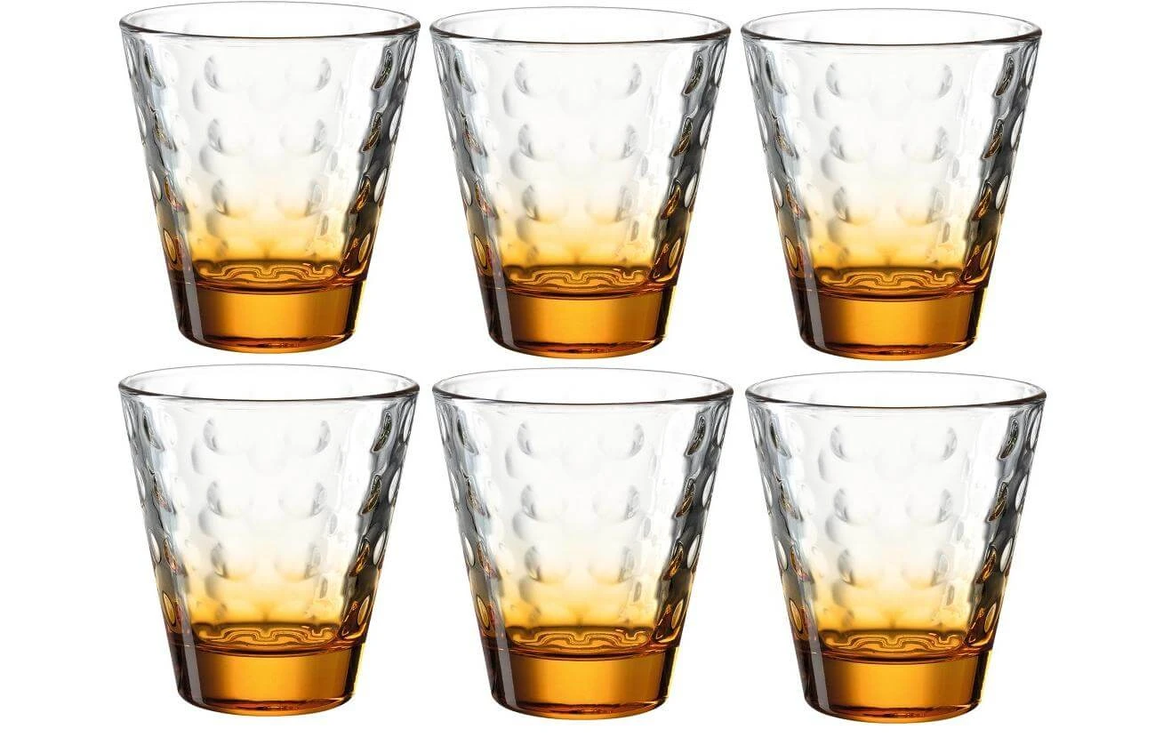Glas Typ: Trinkglas, Material: Glas, Detailfarbe: Orange, Höhe: 9 cm, Verpackungseinheit: 6 Stück, Volumen: 215 ml